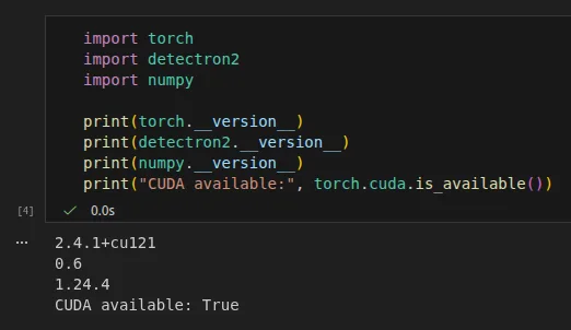 Besides PyTorch, you need to install Detectron2 as well. First, you need to install PyTorch(version will changed depending on your CUDA version), and then Detectron2. Don’t forget to check compatibility between PyTorch and Detectron2. For a GPU-supported PyTorch environment, you can follow my other article (link).