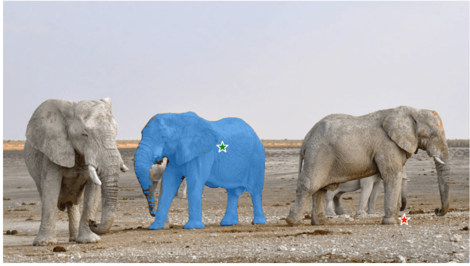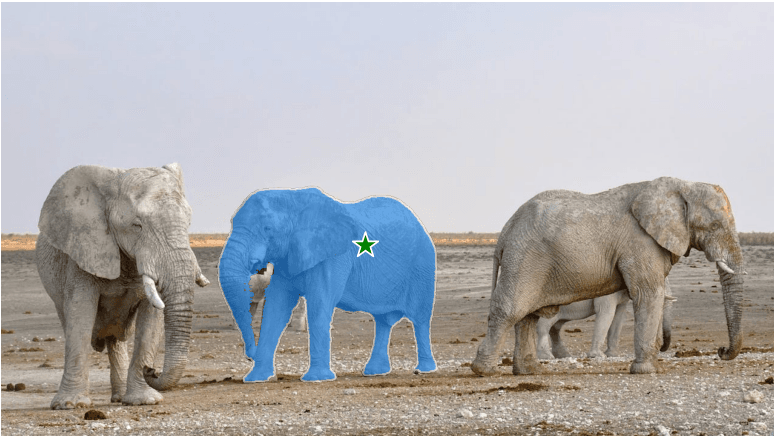 Now, lets try to segment elephant in the middle with point prompts.