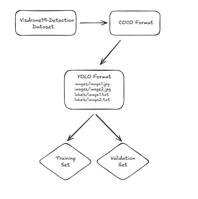 (VisDrone19-Detection dataset → COCO format → YOLO format)