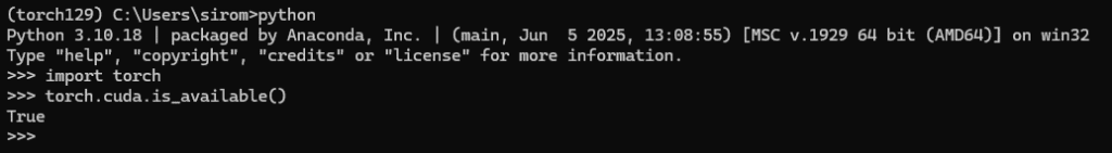 Now, install PyTorch with GPU-support. If you encounter any issues related to PyTorch, you can follow the below article. After you install PyTorch, you can test it with torch.cuda.is_available()