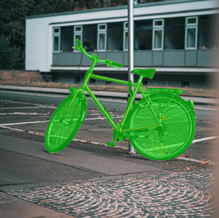 Segmentation with SAM3, prompt:”bicycle” [img]
